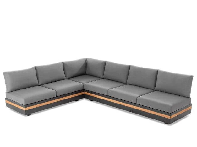 Ein stilsicheres Statement für die Terrasse: Die großzügige Loungegruppe Volano überzeugt mit außergewöhnlichem Design, maximalem Komfort und individuellen Kombinationsmöglichkeiten. Mit einem kubischen Unterbau aus pulverbeschichtetem Aluminium und einer Einlage aus natürlichem Teak sticht Volano sofort ins Auge.