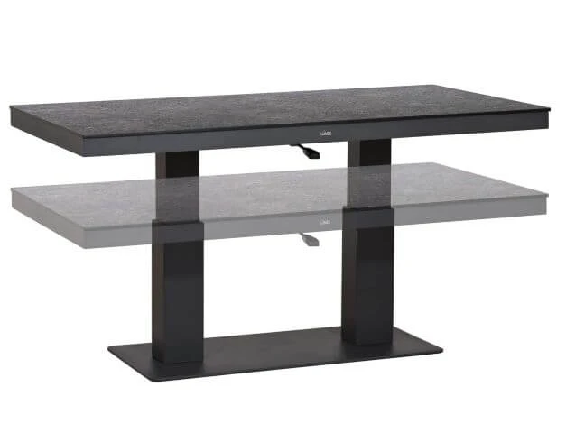 Eine weitere Besonderheit dieser Lounge ist zudem der Lift-Tisch: er lässt sich ganz einfach stufenlos in der Höhe verstellen, so dass er an Ihre persönlichen Bedürfnisse angepasst werden kann. So wechseln Sie jederzeit flexibel zwischen entspanntem Loungen mit erfrischenden Drinks und gemütlichem Dinieren mit leckeren Speisen.