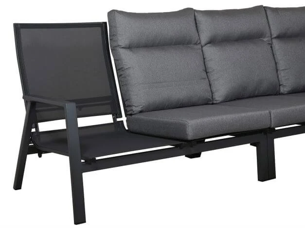 Dank des einzelnen Mittelmoduls, mit welchem Sie wahlweise die linke oder rechte Seite verlängern können, passen Sie diese Ecklounge an Ihre Platzverhältnisse im Garten an. Das Loungeset bietet darüber hinaus genügend Platz für Familie und Freunde. Ob für gesellige Zusammenkünfte oder entspannte Stunden alleine – dieses Set ist der perfekte Ort, um dem Alltag zu entfliehen. Die großzügige Eckkonstruktion ermöglicht eine optimale Raumausnutzung und schafft eine gemütliche Atmosphäre.