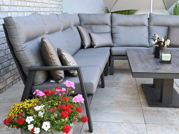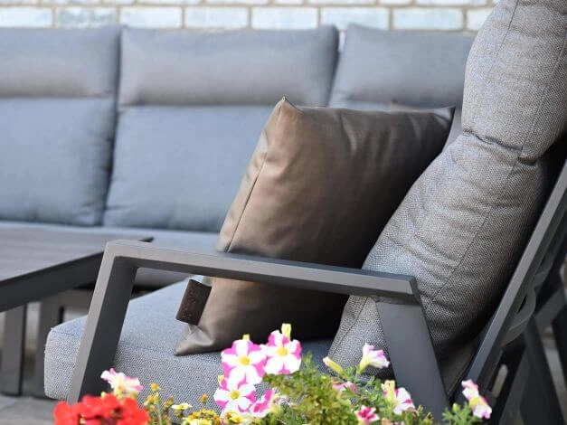 Für maximalen Komfort sind die Sitz- und Rückenflächen mit einem Outdoorgewebe bespannt. Die Rückenlehnen sind angenehm hoch und laden gemeinsam mit den bequemen Sitz- und Rückenpolstern förmlich dazu ein, sich hinzusetzen und den Moment zu genießen.