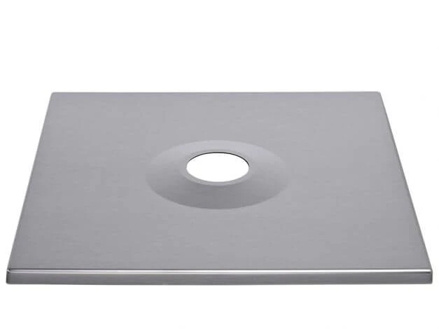 Mit diesem Plattenständer kann hohes Gewicht generiert werden. Daher eignet er sich auch für größere Glatz-Schirme. Er ist aufgeteilt in 4 Kammern wobei in jeder Kammer bis zu zwei Platten (40 x 40 x 8 cm) Platz haben (Platten sind separat zu erwerben). Voll ausgestattet wiegt dieser Sockel bis zu 120 kg. Nivellierbare Stahlfüße an den Ecken gleichen zudem gegebenenfalls vorliegende Unebenheiten aus.