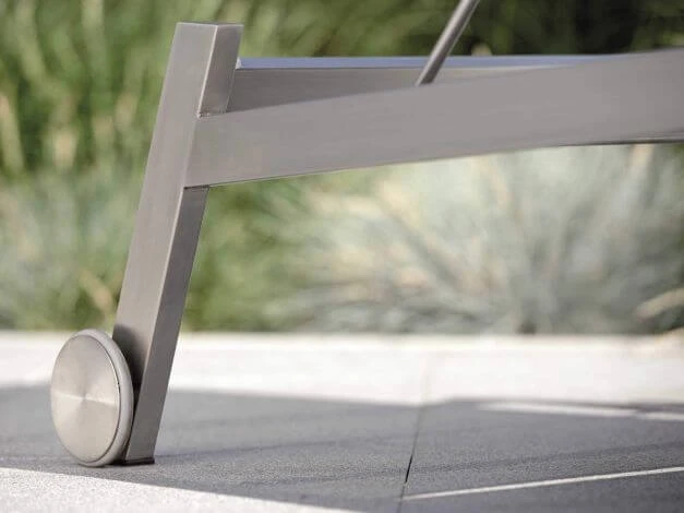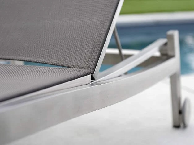 Der Rahmen aus hochwertigem Edelstahl ist ebenso wetterbeständig wie die bequeme Bespannung aus einem Textilenbezug. Aufgrund der angebrachten Rollen können Sie zudem jederzeit komfortabel mit der Sonne wandern. Mit der Liege Allround ist man einfach rundum flexibel.