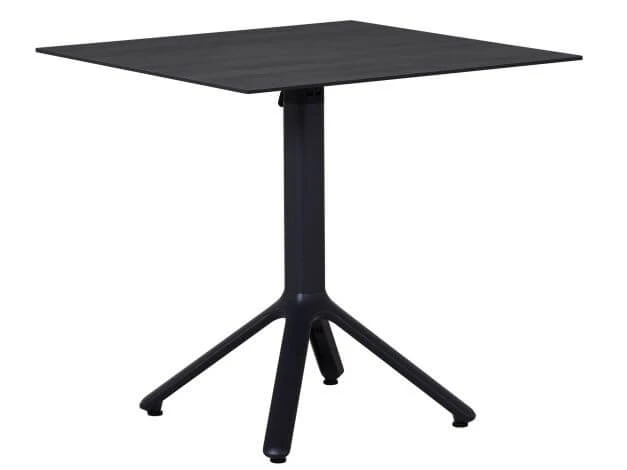 Dieser Klapptisch ist ideal für kleinere Terrassen und Balkone und überzeugt mit seinem eleganten Design und hoher Wetterbeständigkeit. Die Tischplatte ist aus widerstandsfähigem HPL (HPL = unter Hochdruck gepresstes Mehrschichtlaminat), welches besonders frost- und hitzebeständig (-20°C bis +180°C) wetterfest, pflegeleicht und unempfindlich ist. Für eine edle und moderne Optik hat hat die Platte ein ansprechendes Schieferdekor.