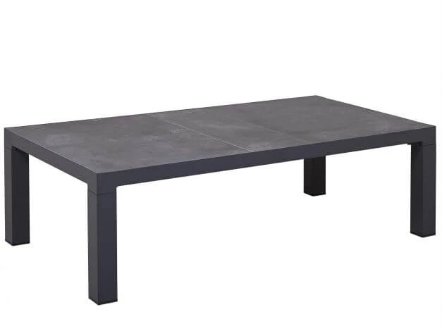 Dieser Loungetisch ist ein perfekte Ergänzung zu Alu Loungemöbeln zum Beispiel aus der Serie Vermont. Er bietet eine großzügige Ablagefläche für das Barbecue, Snacks oder erfrischende Getränke. Dank seiner klaren Form und der anthrazitfarbenen Pulverbeschichtung kann dieser Couchtisch mit sehr vielen Möbeln kombiniert werden. Die Tischplatte besteht aus besonders kratzunempfindlichen Keramik und ist ebenso wetterfest und pflegeleicht wie der Rahmen aus Aluminium.