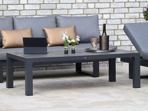 Pflegeleichter Aluminium Couchtisch mit Keramik-Tischplatte