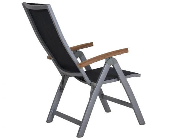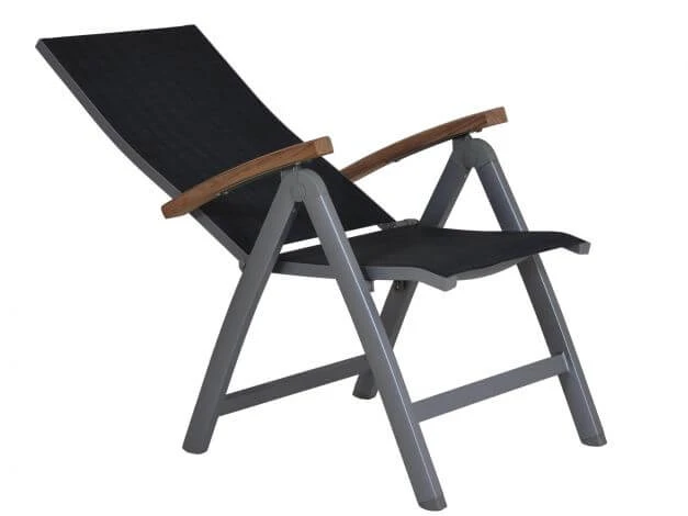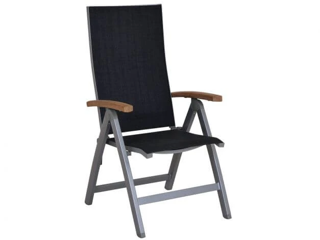 Moderner Hochlehner mit hochwertiger Mix-Tex-Bespannung und Teakholz Armlehnen