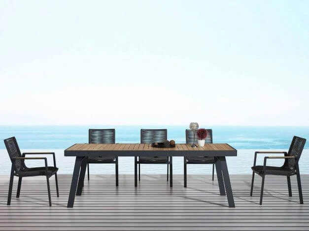 Der Aluminiumrahmen bietet eine hohe Wandstärke welche nicht nur absoulte Stabilität gewährleistet, sondern auch eine optimale Verarbeitung garantiert. Einen eleganten Kontrast bieten die Armlehnen aus hochwertigem Teakholz, die jederzeit eine angenehme und wohl temperierte Armablage bieten.