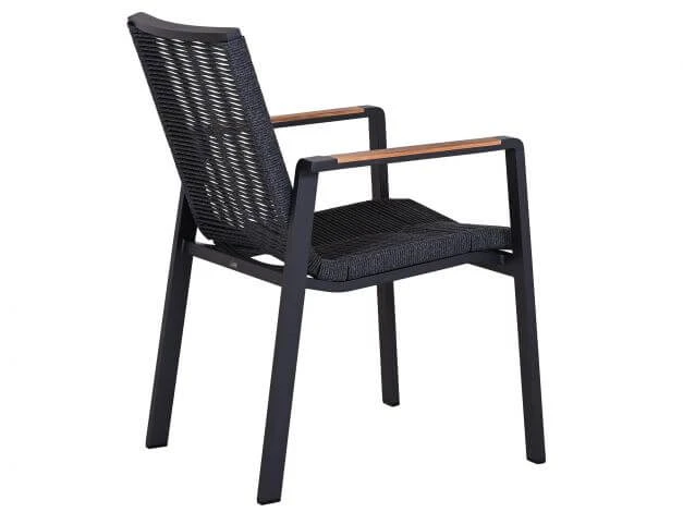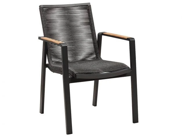 Moderner Stapelsessel mit Rope-Flechtung und Teakholz Armlehnen