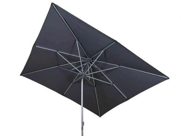 Das gegenläufige Öffnungsprinzip sorgt für eine angenehme Schließhöhe, so dass dieser Gartenschirm an den meisten Gartenmöbeln vorbei einfach geöffnet und geschlossen werden kann. Ein weiterer Clou ist das asymetrische Knickprinzip: das Schirmdach lässt sich beidseitig schrägstellen, wobei es in Richtung Spitze knickt. So entsteht ein einzigartiger Look und gerade die häufig störende untergehende Sonne kann perfekt abgeschattet werden.