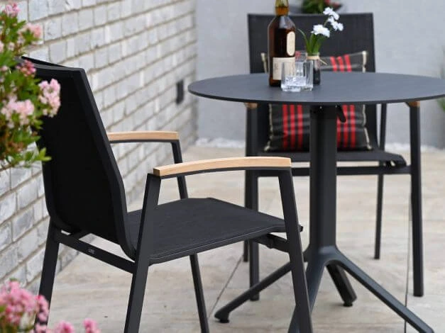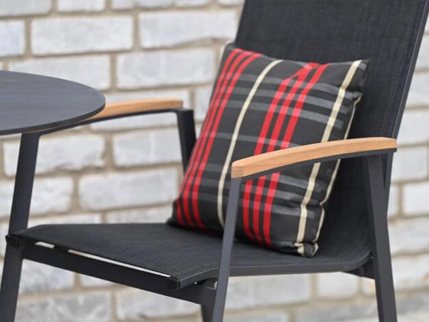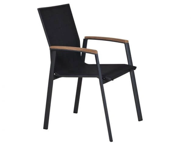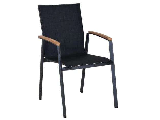 Moderner Gartenstuhl mit hochwertiger Mix-Tex-Bespannung und Teakholz Armlehnen