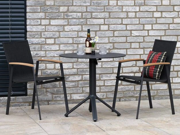 Das anthrazitfarbene Gewebe ist für eine edle Optik mit einer dezenten, silber-grauen Faser versehen und passt ebenso wie die Teakarmlehnen zu dem anthrazitfarbenen Rahmen. Lehnen Sie sich zurück und finden Sie mit dem langlebigen und optisch stilvollen Gartenstuhl Oriental Teak die verdiente Entspannung im Garten!