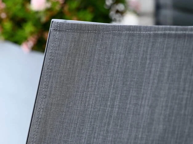 Der Rahmen aus pulverbeschichtetem Aluminium ist darüber hinaus robust und dennoch leicht in der Handhabung. Er wird kombiniert mit einer modernen Mix-Tex-Bespannung. Mix-Tex ist ein besonders strapazierfähiges und pflegeleichtes Gewebe mit einer angenehmen, stoffähnlichen Haptik.