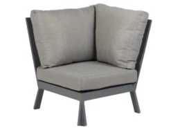 Mit diesem Eckteil können Sie eine modulare Eck-Lounge kreieren. Es ist bis zu 130 kg belastbar und inklusive komfortabler, besonders hochwertiger Sitz- und Rückenpolster mit einer formstabilen Füllung und einem Bezug aus spinndüsengefärbtem Garn mit besonders hoher Lichtechtheit. Der wetterfeste Aluminiumrahmen ist anthrazitfarben pulverbeschichtet und dank seines angenehmen Gewichts einfach in der Handhabung.