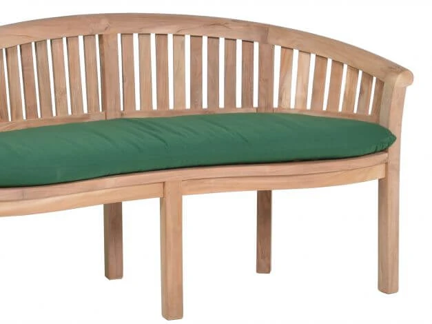 Diese hochwertige Auflage hat die passende Form für unsere Teakholz Bananenbank. Sie wertet den Sitzkomfort deutlich auf und lässt sich dank zahlreich, wählbarer Farbvarianten passend zu Ihrem Gartenambiente bestellen. Auch Wendemuster mit z.B. einer unifarbenen und einer farblich passend gemusterten Seite sind möglich.