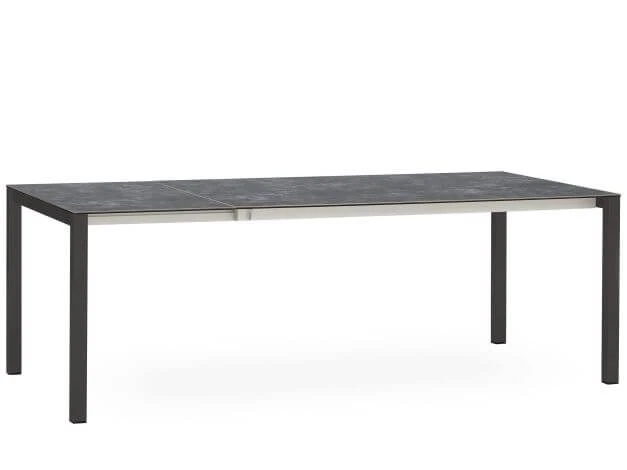 Für maximale Stabilität wird für das Untergestell hochwertiger Edelstahl verwendet, um den Tisch mit einer Vielzahl an Aluminiumstühlen kombinieren zu können, ist es anthrazitfarben pulverbeschichtet.