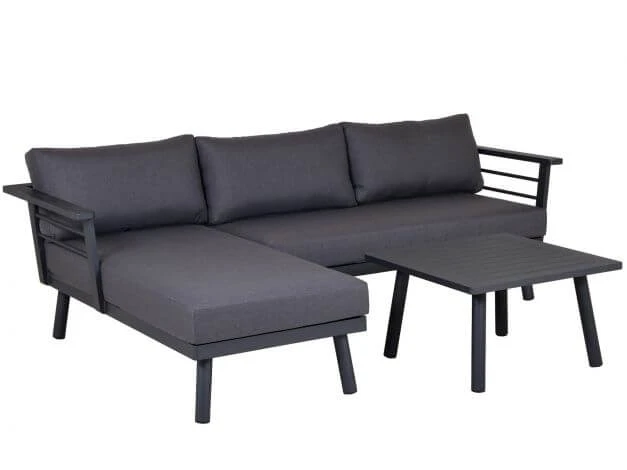 Der Couchtisch bietet ausreichend Platz zum Abstellen von erfrischenden Getränken und kleinen Snacks und passt mit seinen Dimensionen hervorragend zu diesem Gartenmöbel. Lehnen Sie sich entspannt zurück und erleben Sie mit dieser Loungegruppe Wohlfühlkomfort wie im heimischen Wohnzimmer.