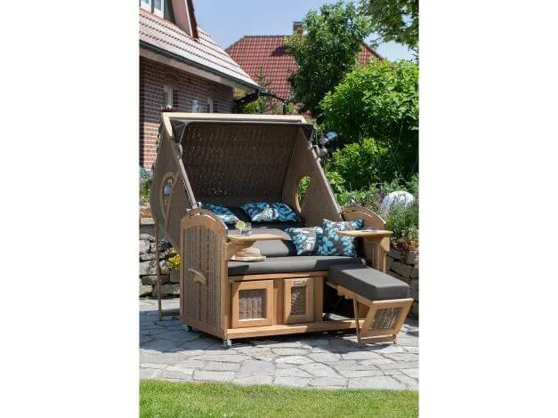 Genießen Sie mit dem deVries Strandkorb Madura XXL alle Vorzüge von Strandkörben und schaffen Sie auf Ihrem Balkon, der Terrasse oder im Garten eine gemütliche Urlaubsinsel für zuhause.