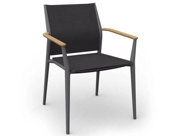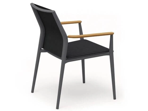 Der Carla Stapelsessel von solpuri wurde von Hoffmann Kahleyss Design entworfen. Der aufwendig produzierte Alurahmen, mit konifizierten Rohren, lässt den Stuhl besonders elegant erscheinen. Die Teak-Armlehne gibt dem Stuhl etwas Wärme und rundet den Komfort durch seine handschmeichelnde Form ab.