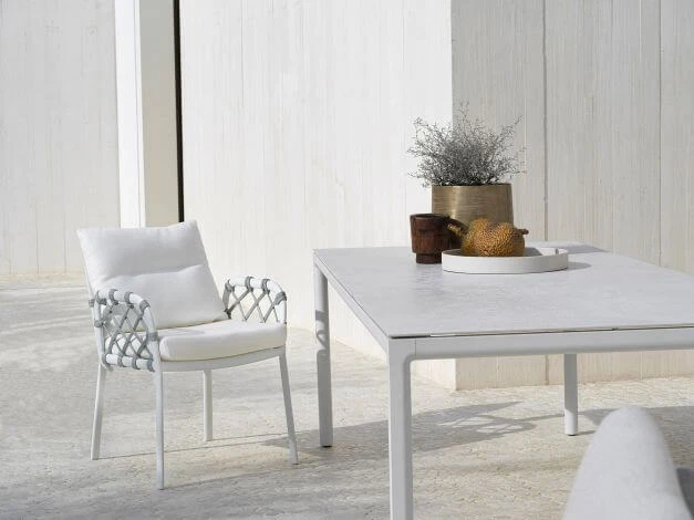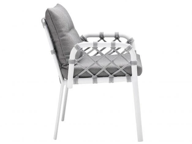 Der Caro Dining Sessel aus dem Hause solpuri greift das für die Caro Kollektion typische Design eines offenen Rautengeflechts auf, das von einem filigranen Rahmen mit gerundeter Silhouette getragen wird. Passgenaue, komfortable Polster verleihen dem Caro Dining Sessel zudem einen luxuriösen Touch und laden zum gemütlichen Verweilen ein.