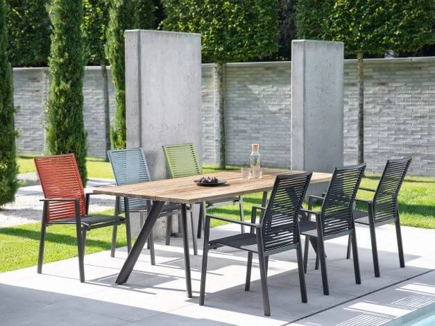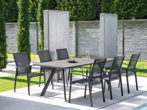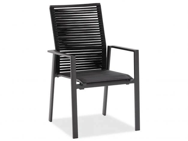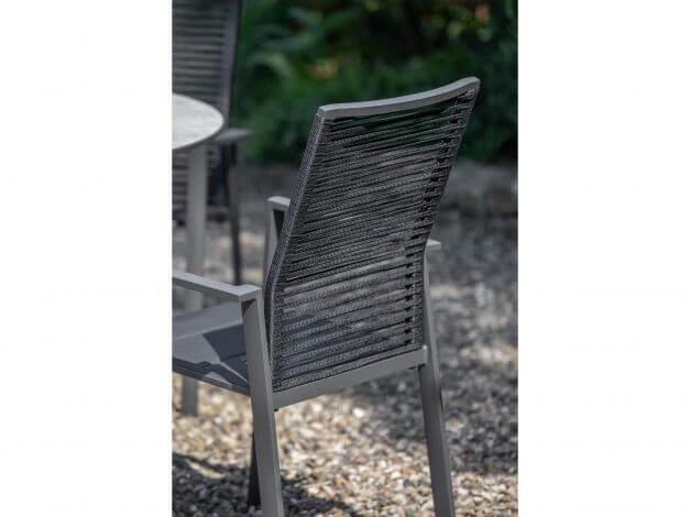 Jetzt kommt Abwechslung in den Garten! Der Gartenstuhl Cervo von Niehoff bietet eine neuartige Optik mit einer offenen Rope-Flechtung in der Rückenlehne. Da die Rückenlehne zudem höher als bei gewöhnlichen Stühlen ist, kommt auch der Sitzkomfort nicht zu kurz. Die Sitzfläche ist mit einem Textilen in schwarz gepolstert und erlaubt bietet auch ohne Auflage bequemes Sitzen. So sorgt Cervo von Niehoff für ein frisches Gesamtbild im Garten.