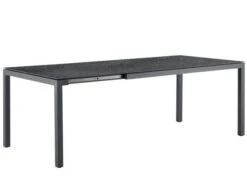 Bei der Tischserie Classic ist darüber hinaus der Name Programm. Das geradlinige Aluminium-Tischgestell aus quadratischen Vierkantprofilen verleiht dem Tisch sein klassisch zeitloses Design. Die Tischplatte aus hochwertigem HPL hat das Premium Dekor steel graphite mit besonders eleganter Oberflächenstruktur und erzeugt eine unvergleichbare optische Eleganz und ist ebenso wie das stabile Aluminium-Untergestell besonders pflegeleicht, widerstandsfähig, lichtecht und temperaturbeständig.
