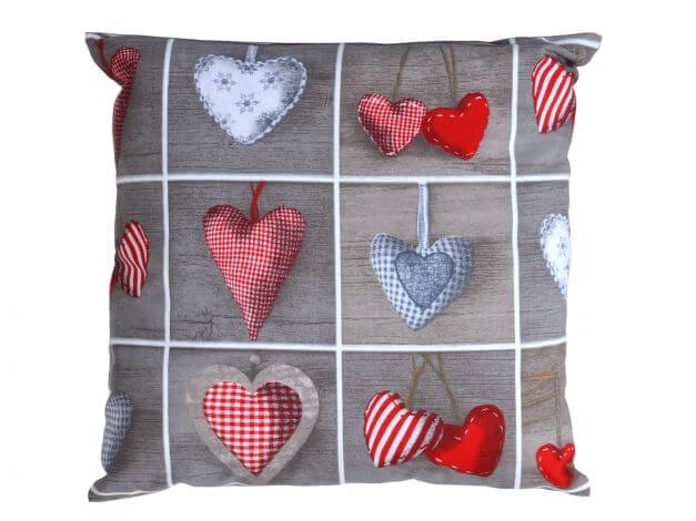 Mit diesem Dekokissen machen Sie Ihren Garten so richtig gemütlich. Das Printdesign mit verschiedenen Herzen auf einem Untergrund im Holzlook lässt jedes Herz höher schlagen. Dank des integrierten Reißverschluß kann zudem auf Wunsch die Füllung aus dem Bezug entnommen werden.