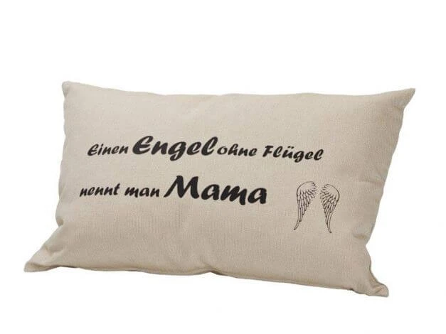 Dieses kuschelige Dekokissen hat Sie einfach verdient! Ohne Sie wären wir gar nicht da und mit diesem bedruckten Kissen können wir Ihr zeigen, dass wir wissen, dass Sie immer für uns da ist! „Einen Engel ohne Flügel nennt man Mama“. Punkt.