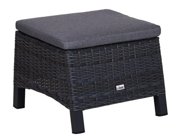 Ob als bequemer Fußhocker oder zusätzlicher Sitzplatz für unerwarteten Besuch – der Hocker Chalet ist eine ideale Ergänzung zu vielen Gartensmöbeln wie zum Beispiel dem passenden Diningsessel Chalet. Das robuste Aluminiumgestell ist mit einem pflegeleichten und witterungsbeständigen PE-Geflecht umwoben, welches in einer eleganten Kombination aus breiteren und schmaleren Geflechtsträngen in edlen grauen Farbtönen daherkommt. Im Lieferumfang mit enthalten ist zudem ein bequemes Hockerkissen in der Farbe dunkelgrau.