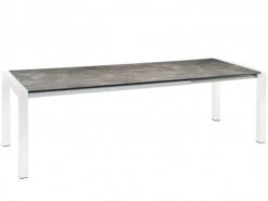 Die hochwertige Tischplatte besteht aus bis zu 50, unter Hochdruck gepresster Lagen Laminatschichten (HPL), und ist dadurch ideal für den Außenbereich. An beiden Tischenden (Stirn- & Kopfseite) ist das edle U-Profil des Aluminiumgestells sichtbar, was diesem ausziehbaren STERN Gartentisch einen eleganten, modernen Charakter verleiht.