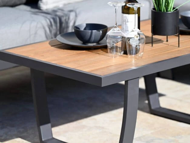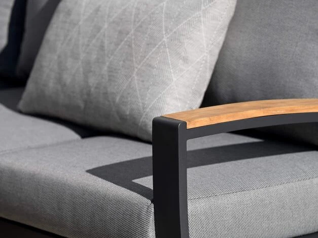 Gemütliche Loungeecke mit edlen Teakholz Armlehnen