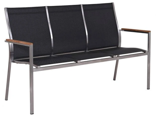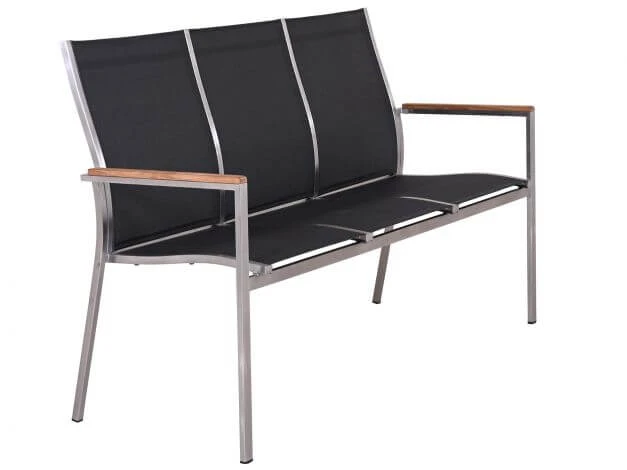 Elegante Gartenbank aus hochwertigen Materialien und mit Teak Armlehnen