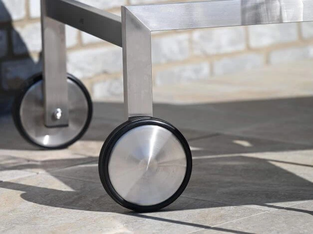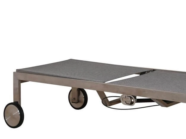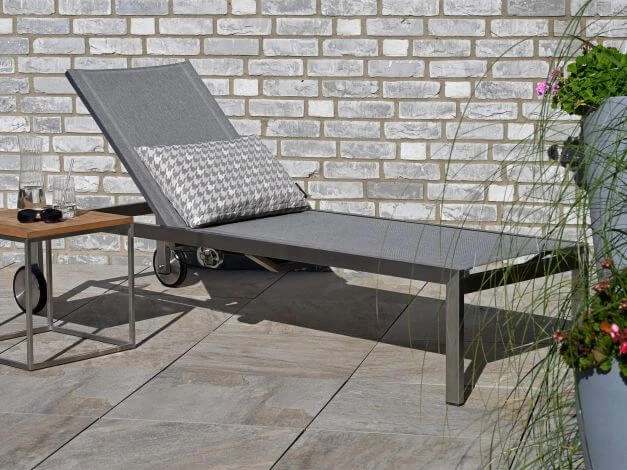 Elegant, edel und hochwertig – die Edelstahl Gartenliege Rhodium begeistert Puristen ebenso wie Fans von Gartenmöbeln mit klarer Formensprache. Der hochwertige Edelstahlrahmen ist mit einem komfortablen Outdoorgewebe aus hochwertigem Phifertex® bespannt, dass eine elegante, stoffähnliche Optik bietet und zudem hautsympathisch, luftdurchlässig und schnelltrocknend ist. Somit bietet die Rollenliege Rhodium Easy Lift auch hohen Liegekomfort ohne Polsterauflage.