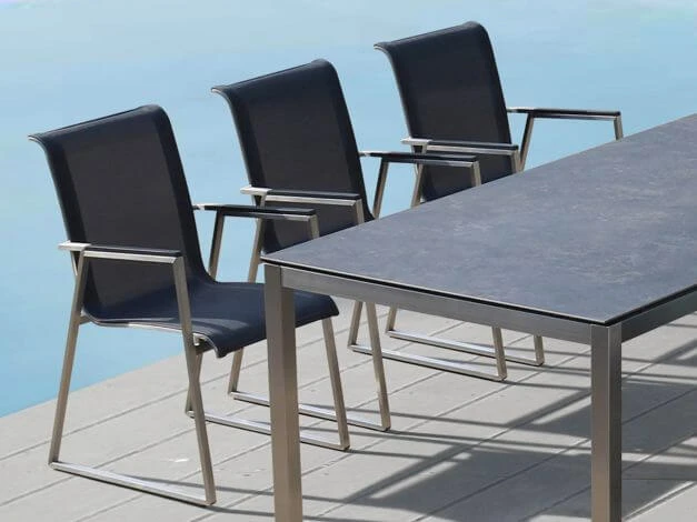 Moderner Gartensessel mit Kufenförmigem Edelstahl-Rahmen
