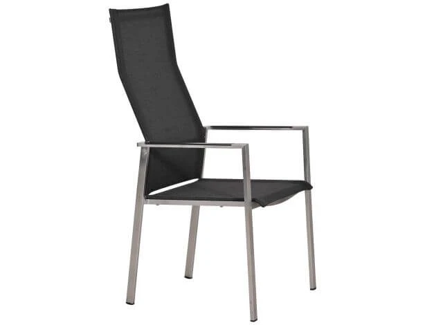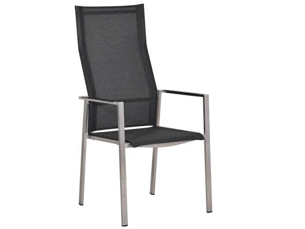 Dieser stapelbare Gartenstuhl überzeugt nicht nur mit seinem puristischen und geradlinigen geformten Rahmen aus hochwertigem Edelstahl. Auch die moderne Bespannung aus hochwertigem softsling ist von höchster Güte und bietet neben hohem Komfort eine elegante, stoffähnliche Optik. Perfekt dazu passen zudem die Armlehnen-Inlays aus anthrazitfarbenem Aluminium.