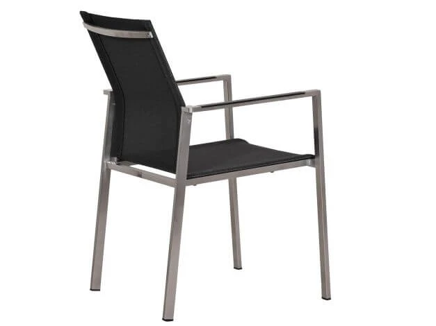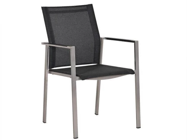 Dieser stapelbare Gartenstuhl überzeugt nicht nur mit seinem puristischen und geradlinigen geformten Rahmen aus hochwertigem Edelstahl. Auch die moderne Bespannung aus hochwertigem softsling ist von höchster Güte und bietet neben hohem Komfort eine elegante, stoffähnliche Optik. Perfekt dazu passen zudem die Armlehnen-Inlays aus anthrazitfarbenem Aluminium.