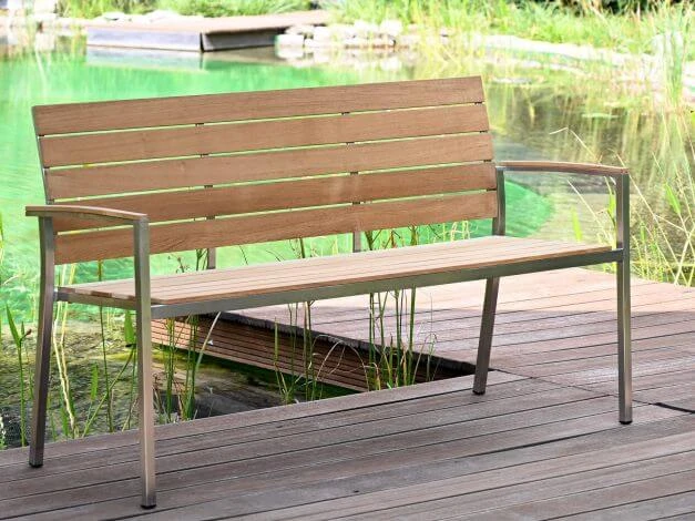 Gartenbank in hochwertigem Materialmix aus Edelstahl und Teak