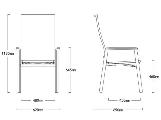 Aber auch die verarbeiteten Materialien sind von höchster Güte. Sie machen den Stapelsessel Rhodium zu einem absolut witterungsbeständigen, pflegeleichten und langlebigen Gartenmöbel. Die hautsympathische Bespannung ist luftdurchlässig und schnelltrocknend. Für eine stets wohl temperierte und bequeme Armablage sind die Armlehnen zudem leicht geschwungen und mit Teak versehen.