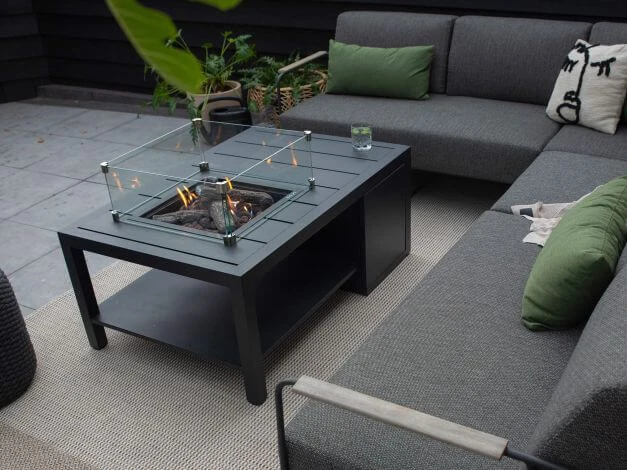 Feuertisch Cosiflow straight mit seitlich versetzter Feuerstelle, inkl. Glasrahmen