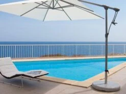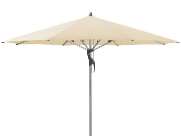 Sein schlichtes Design und seine Dimension überzeugen zudem sowohl auf großzügigen Plätzen, Hotelterrassen, Poollandschaften oder im privaten Garten. Der robuste, profilierte Mast aus Aluminium, flexible Strebenenden, sowie eine zusätzliche, dritte Strebenkrone machen den Sonnenschirm dabei besonders windstabil, so dass er auch an ungemütlichen Tagen für Behaglichkeit und Schatten sorgt.