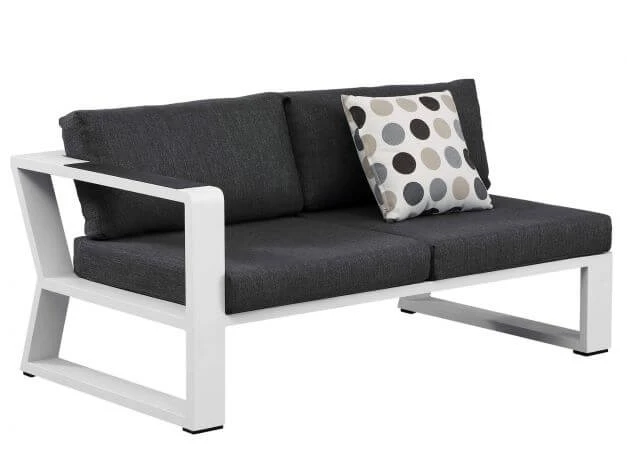 Neben Funktionalität überzeugt Lovina auch mit hoher Langlebigkeit und Ästhetik. Die stabilen, wetterfesten Aluminiumrahmen sind weiß pulverbeschichtet und besonders pflegeleicht. Für einen edlen Kontrast und zeitlosen Look sind die Armlehnen sowie der Deckel des Getränke- und Sektkühlers in schlichtem Anthrazit gehalten.