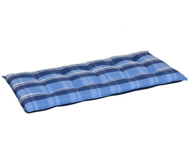 Mit dieser Bankauflage erhöhen Sie den Sitzkomfort in Ihrer Bank deutlich. Sie ist traditionell mehrfach gesteppt und hat einen schmalen, umlaufenden Stehsaum. Darüber hinaus ist dieses Kissen als Wendeauflage konzipiert – die Vorderseite bietet ein kariertes Muster in blau und weiß, die Rückseite ist unifarben dunkelblau. So können Sie jederzeit variieren.