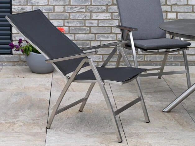Edelstahl Gartenstuhl Hochlehner mit komfortabler, 7-fach verstellbarer Lehne