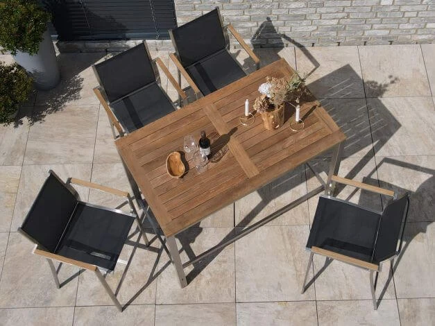 Entdecken Sie die perfekte Kombination aus Stil und Natur mit unserem Edelstahl Stehtisch Barolo. Dieses Gartenmöbel vereint zeitlose Eleganz mit der warmen Schönheit von Holz, um Ihnen ein außergewöhnliches Outdoor-Erlebnis zu bieten. Teakholz ist bekannt für seine bemerkenswerte Wetterbeständigkeit und Haltbarkeit und wird unbehandelt mit der Zeit eine elegante silbergraue Patina entwickeln, die den Charme und die Einzigartigkeit des Möbelstücks unterstreicht.