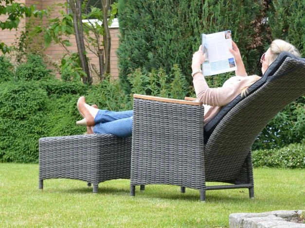 Damit Sie die verstellbare Liegeposition Ihres Gartenstuhls voll ausnutzen können, sollte dieser Fußhocker nicht fehlen. Dank der leicht schrägen Form können Sie Ihre Beine bequem ausstrecken und ablegen. Gönnen Sie sich ein verdientes Nickerchen und ruhen Sie sich in Ihrem Garten aus!