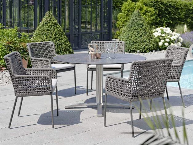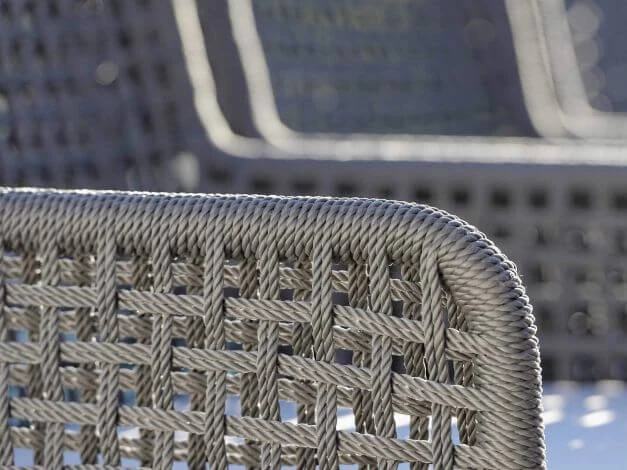 Die bequemen Gartenmöbel der Serie Greta überzeugen mit einer durchgefärbten Polypropylen-Faser und einer Sitzfläche aus Textilen – so kann die beliebte Serie im Indoor-Look bedenkenlos im Außenbereich eingesetzt werden. Die offene Flechtung in Kordeloptik ist zudem unverwechselbar und passt perfekt zu der Formensprache von Greta.