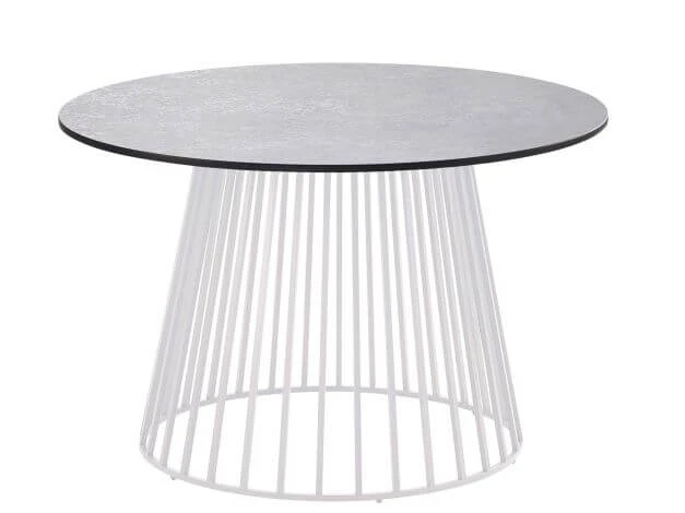 Grid ist eine Kollektion runder Lounge- und Beistelltische in trendigem Industrial Design. Das filigrane, transparent gitterartige Untergestell besteht aus pulverbeschichtetem Aluminium und wird mit einer hochwertigen, geschlossenen Teakholz-Tischplatte kombiniert.