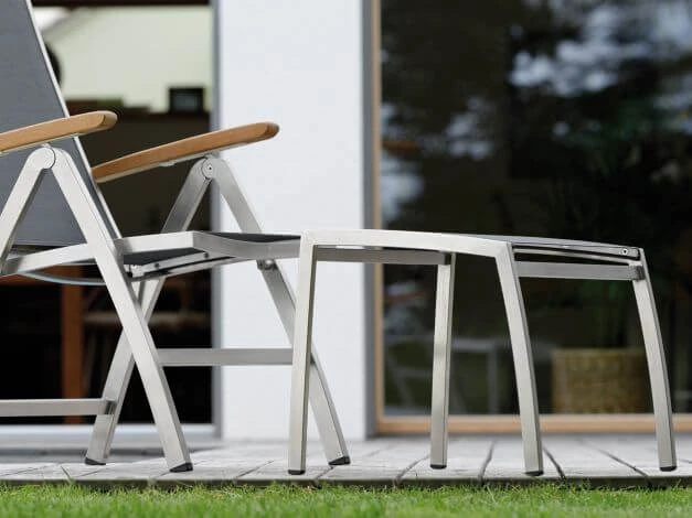 Aus hochwertigem Edelstahl der Güteklasse 304 gefertigt ist er enorm resistent gegen Rost und damit sehr pflegeleicht. Ebenso witterungsbeständig ist die komfortable und hautsympathische Bespannung aus hochwertigem Textilen.