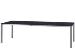 Für maximale Stabilität ist das Gestell aus Edelstahl gefertigt, dass graphitfarben Pulverbeschichtet ist um es mit entsprechenden Aluminium- oder Geflechtstühlen zu kombinieren. Passend zu Stil, Architektur und Ambiente in Ihrem Außenbereich können Sie zudem verschiedene Dekore für die Tischplatte wählen.