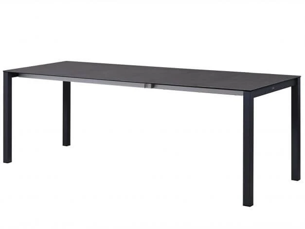 Da das hochwertige Edelstahl Untergestell mit einer anthrazitfarbenen pulverbeschichtung versehen ist, kann dieser Tisch ideal auch mit dunklen Aluminium Gartenstühlen kombiniert werden.