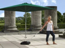 Aber das ist nicht genug: Der Tritthebel ermöglicht eine 360°-Drehung und so noch mehr Möglichkeiten den Schatten optimal auszurichten. Das alles verspricht Schatten bei jedem Sonnenstand! Der enthaltene Schirmständer (Ständerkreuz) ist für Bodenplatten von 50 x 50 cm ausgelegt (Platten nicht im Lieferumfang).